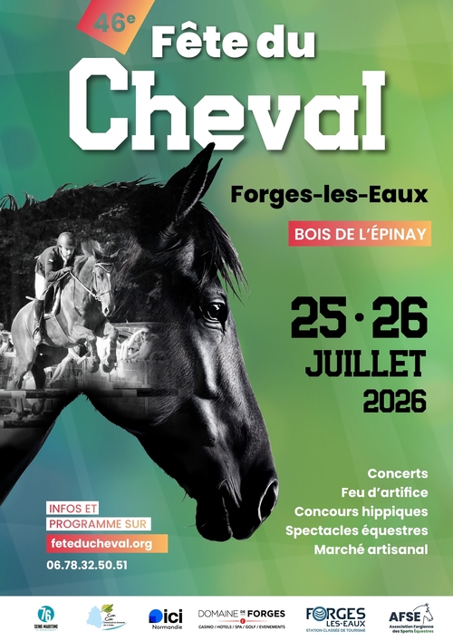 La formidable équipe de bénévoles de l'Association Forgionne des Sports Equestres, et du Comité des Fêtes de Forges-les-Eaux, vous invite à découvrir sa "46ème Fête du Cheval", avec au programme cette année :